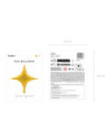 Balon foliowy metalizowany Gwiazda 4-ramienna w kolorze złotym, wymiary przed napompowaniem ok. 45 cm (18), wymiary po napompowaniu ok. 42 cm (16.5). Do napompowania powietrzem. Zestaw zawiera słomkę. Produkt w niższej cenie. Ostrzeżenie. Nieodpowiednie dla dzieci w wieku poniżej 3 lat. Małe części. Niebezpieczeństwo udławienia się.