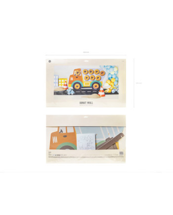 Ściana na donuty Ciężarówka, wykonana z papieru z 10 kołkami do samodzielnego zamontowania, szerokość ok. 61 cm, wysokość ok. 37.5 cm. Produkt w niższej cenie. Uwaga. Tylko do dekoracji. Produkt jednorazowego użytku. Produkt nadaje się do kontaktu z żywnością.